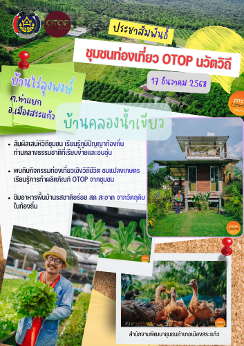 เชิญชวนเที่ยวชุมชน OTOP นวัตวิถี