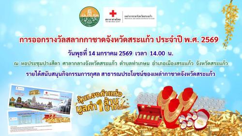 วันนี้ 13.30 น. ขอเชิญทุกท่านร่วมติดตาม Live “การออกรางวัลสลากกาชาดจังหวัดสระแก้วประจำปี 2569” ผ่านเพจ สวท.สระแก้ว และ เหล่ากาชาดจังหวัดสระแก้ว