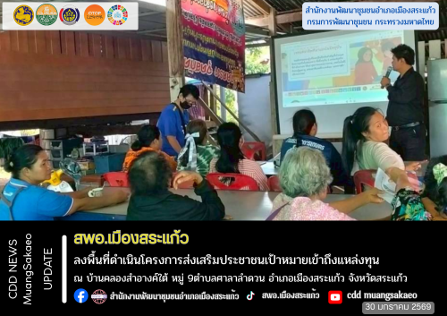 วันศุกร์ ที่ 30 มกราคม 2569 ณ ที่ทำการกลุ่มออมทรัพย์เพื่อการผลิตบ้านคลองสำอางค์ใต้ หมู่ที่ 9 ต.ศาลาลำดวน อ.เมืองสระแก้ว จ.สระแก้ว