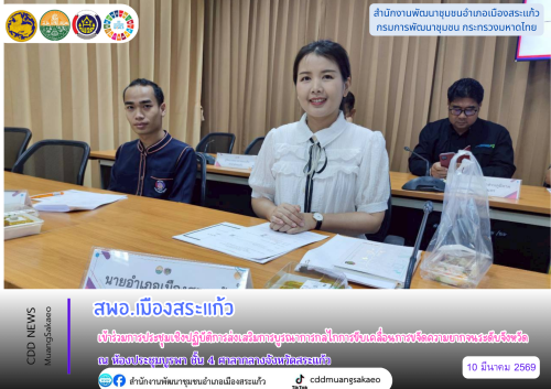 วันอังคารที่ 10 มีนาคม 2569 เวลา 09.00 น. ณ ห้องประชุมบูรพา ชั้น 4 ศาลากลางจังหวัดสระแก้ว