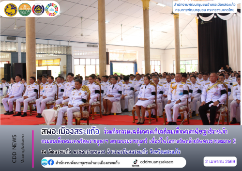 วันพฤหัสบดี ที่ 2 เมษายน 2569 เวลา 08.30 น. ณ วัดสระแก้ว พระอารามหลวง อำเภอเมืองสระแก้ว จังหวัดสระแก้ว