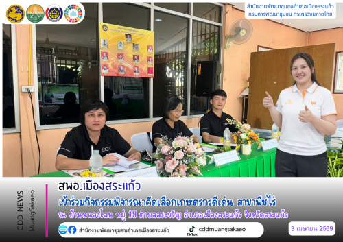 สพอ.เมืองสระแก้ว เข้าร่วมกิจกรรมพิจารณาคัดเลือกเกษตรกรดีเด่น สาขาพืชไร่